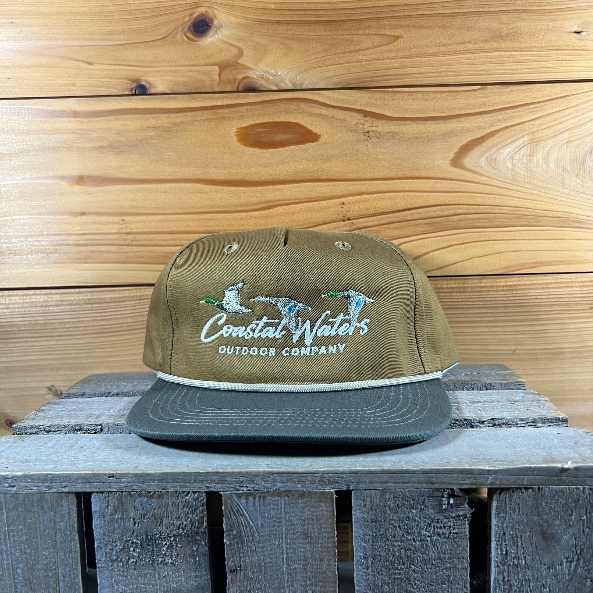 Add our Tri-Mallard Rope Hat to your hat collection. Logo embroidered on a Lost Hat Co. Goat Rope Hat